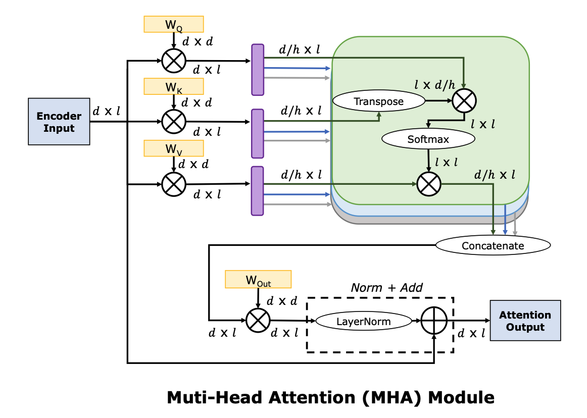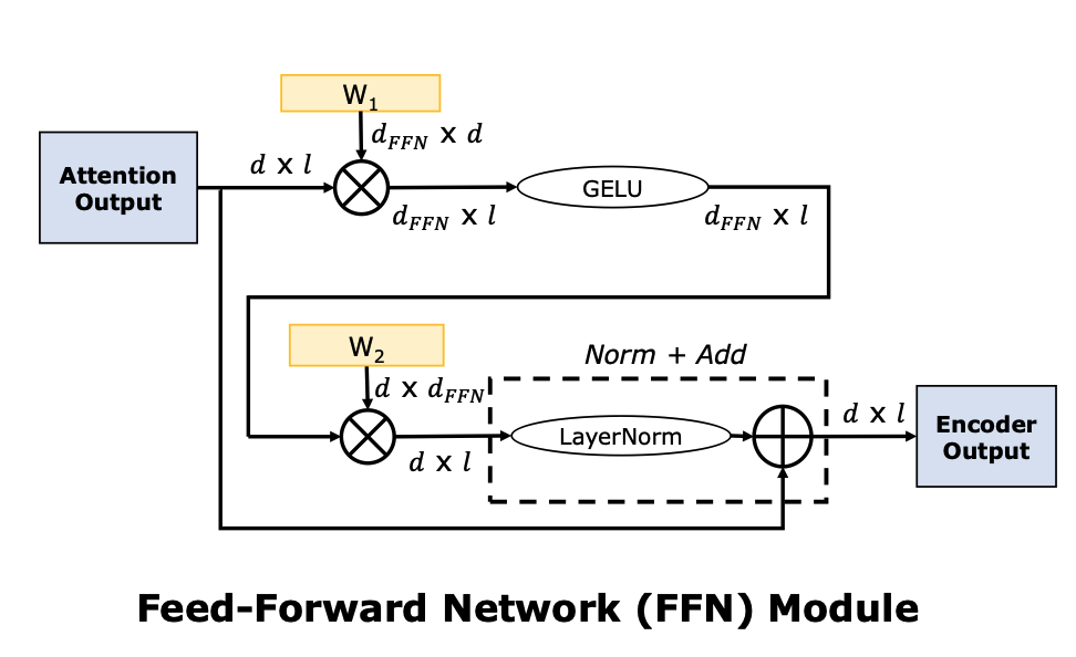 Full Stack Optimization of Transformer Inference: a Survey 논문에 나와있는 Encoder 의 attention 연산과 FFN 연산 도식도이다. LayerNorm 등의 위치는 LLM 모델마다 조금씩 차이가 있을 수 있으나 전체적인 flow 는 유사하다.